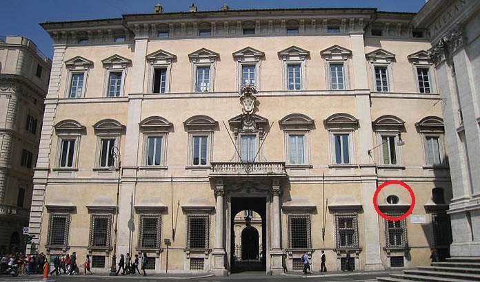 Alla finestra è legata un curioso racconto: una vecchietta, molto affezionata alla sua casetta, ne rifiutasse l’esproprio. Quando venne costruito il palazzo Altieri, lei fu minacciata di rappresaglie e si rivolse al proprietario, il Cardinale Altieri (in seguito Papa Clemente X).