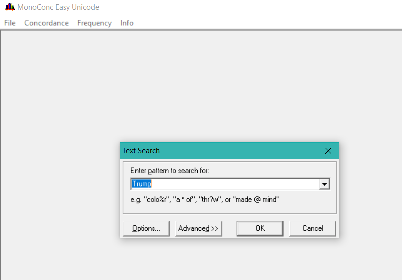 Per realizzare delle query più articolate, si ricorrerà alle Regular Expressions e al matching, cioè la verifica che una stringa appartenga all’insieme descritto dall’espressione regolare. Si procede selezionando Concordance, e poi Search.