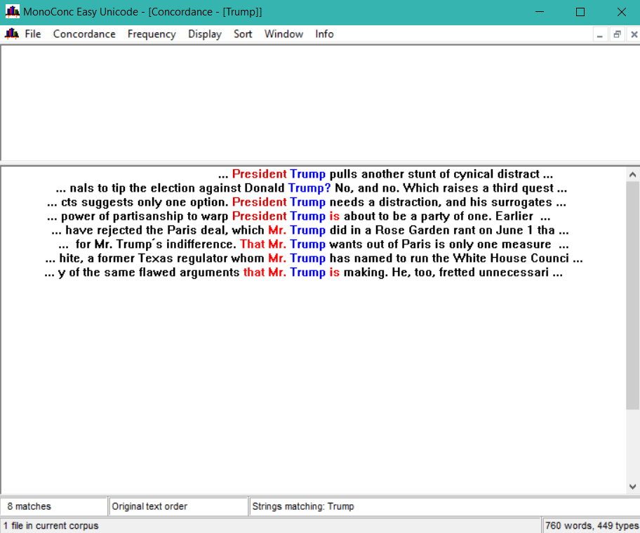 MonoConc è un programma di analisi testuale per Windows semplice e pratico. Il programma è di capacità media in quanto a prestazioni.