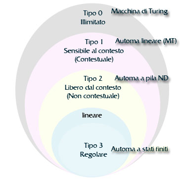 Più la grammatica è in grado di generare linguaggi complessi, più complesso è la struttura della macchina necessaria a riconoscerla. Chomsky quindi crea la Gerarchia di Chomsky, ovvero una strutturazione a quattro livelli per identificare la complessità della grammatica.