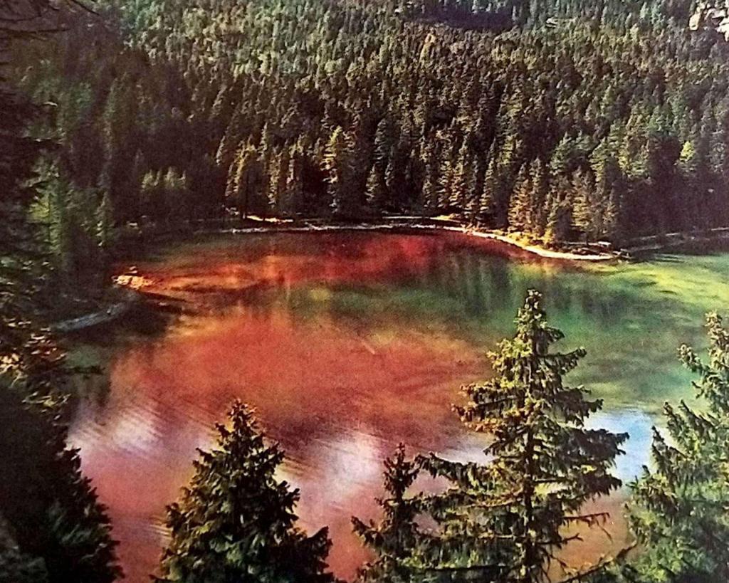 Chiamato anche lago degli orsi, il lago alpino è famoso soprattutto tra gli abitanti locali per un fenomeno avvenuto fino al 1964. Le acque si tingevano di un rosso intenso che la popolazione non riusciva a spiegare e che ha dato vita a numerose leggende. Oggi sappiamo che l’arrossamento delle acque era dovuto all’azione di un’alga (tovellia sanguinea) che, a causa dell’inquinamento e del cambiamento climatico, è scomparsa, lasciando del colore cremisi del lago solo un lontano e misterioso ricordo.