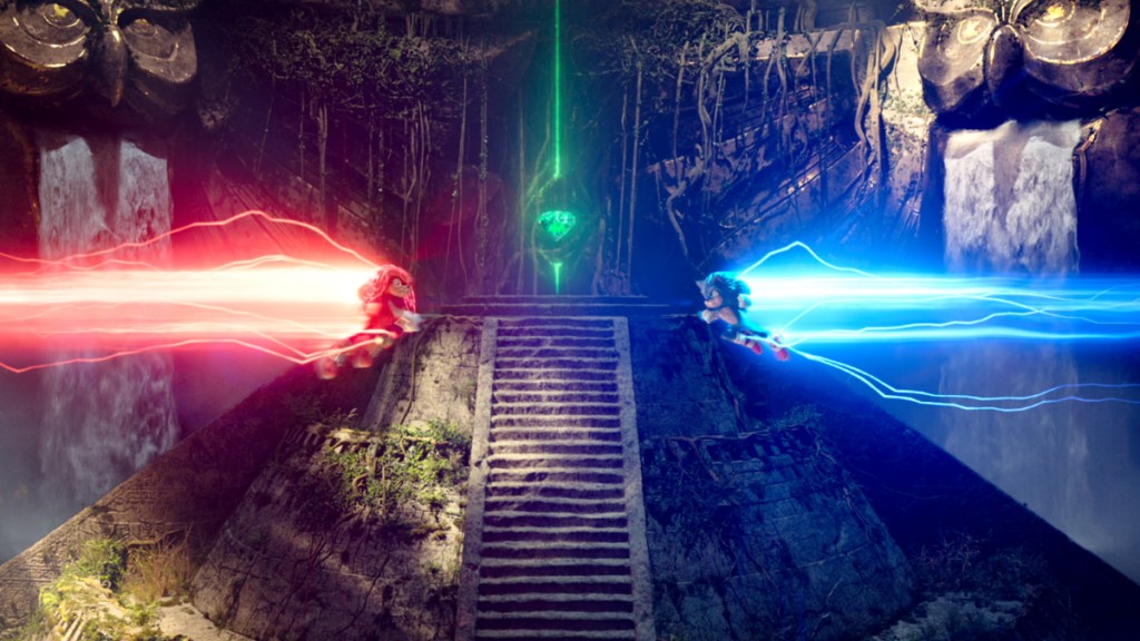 Le scene d’azione: comparate al precedente film, sono notevolmente superiori in qualità, spirito e cinematografia. Non c’è proprio paragone! Ho trovato particolarmente intriganti la scena di fuga dalla valanga, e l’infiltrazione nel tempio nascosto. Il senso di velocità e di adrenalina dei videogiochi è stato mantenuto perfettamente, perché i percorsi che Sonic affronta non sono lineari e sono costellati di pericoli e insidie. Ad alta velocità, vediamo Sonic schivare lance, oltrepassare baratri e distruggere robot mortali.
