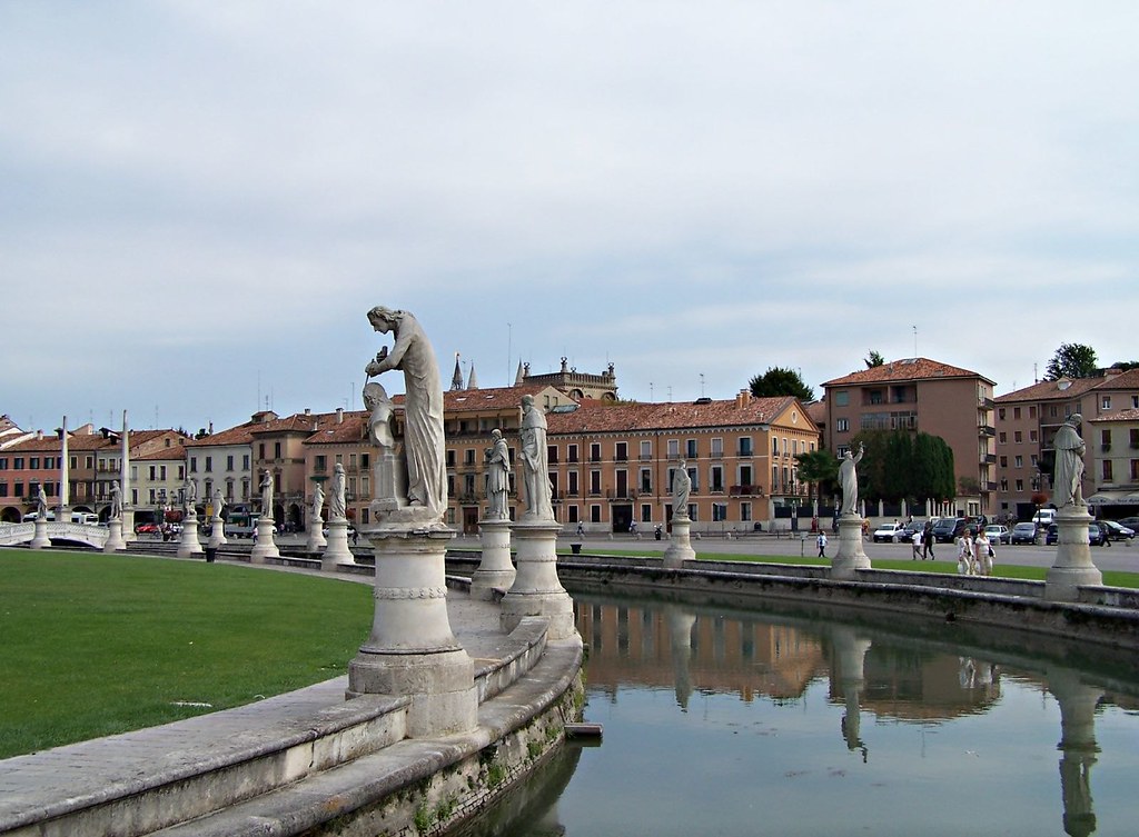 Tra le piazze più iconiche d’Italia e probabilmante d’Europa (grazie ai suoi circa 90.000 metri quadrati è infatti la piazza più grande d’Italia e una tra le più grandi in Europa) non si può evitare di menzionare Prato della Valle, il “Prato senza erba”. La piazza di forma ovale è un grande spazio monumentale con un’isola verde centrale, chiamata Isola Memmia, delimitata da un canale su cui svettano due file di statue rappresentanti le più illustri personalità nate o vissute in città, tra cui Antenore, Torquato Tasso, Francesco Petrarca e Galileo Galilei.
