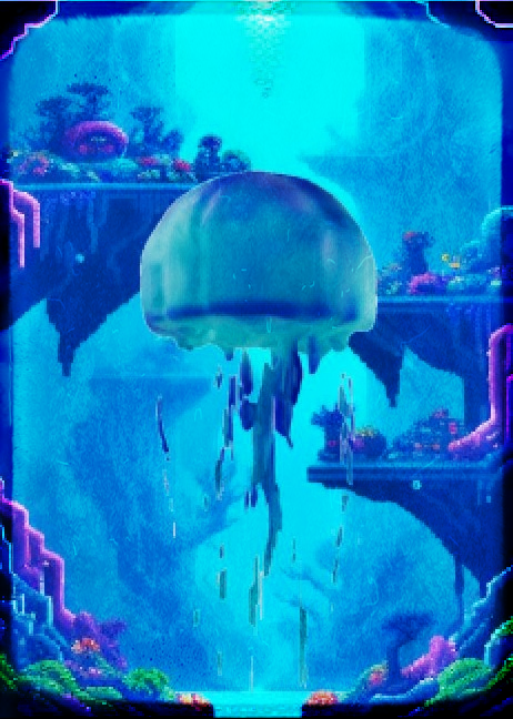 Nel seguente lavoro, infatti, la medusa è stata realizzata in 3D e l’immagine è stata applicata a una pixel art: