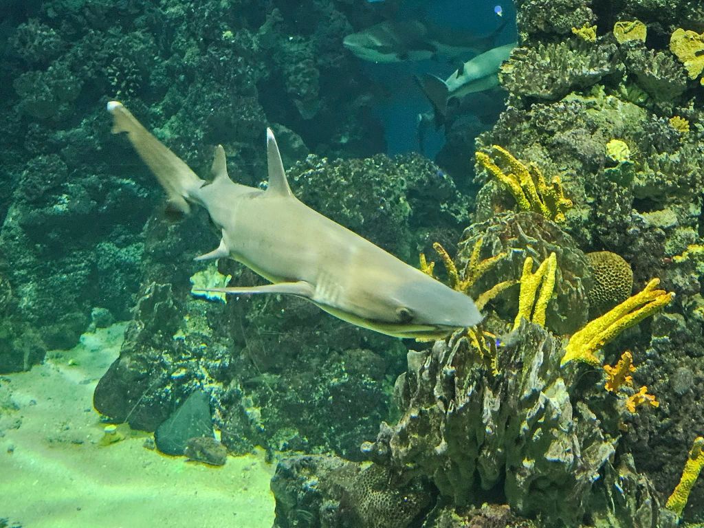 Un nastro trasportatore ci ha portati lungo un tunnel circondato da vasche zeppe di squali, mante e pesci di ogni tipo.