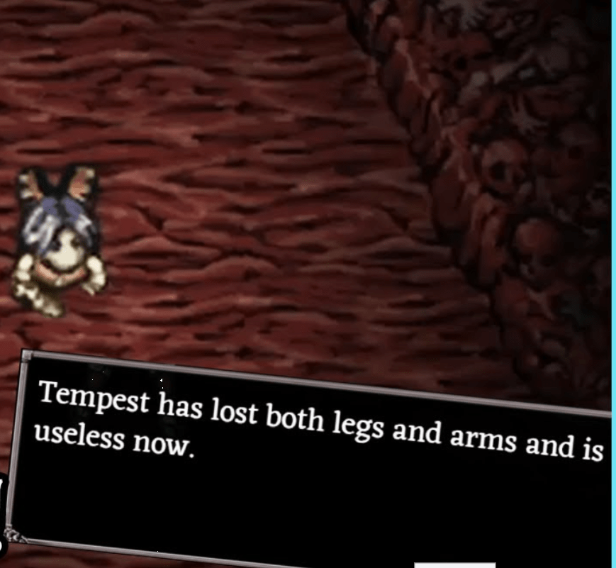 Un altro aspetto disturbante della scrittura di Fear & Hunger è il modo in cui affronta il body horror e la perdita dell’integrità fisica. Il gioco non si limita a evocare il timore della morte, ma lo trasforma in un’esperienza concreta, rendendo il corpo del personaggio vulnerabile a mutazioni, mutilazioni e violenze di ogni genere.