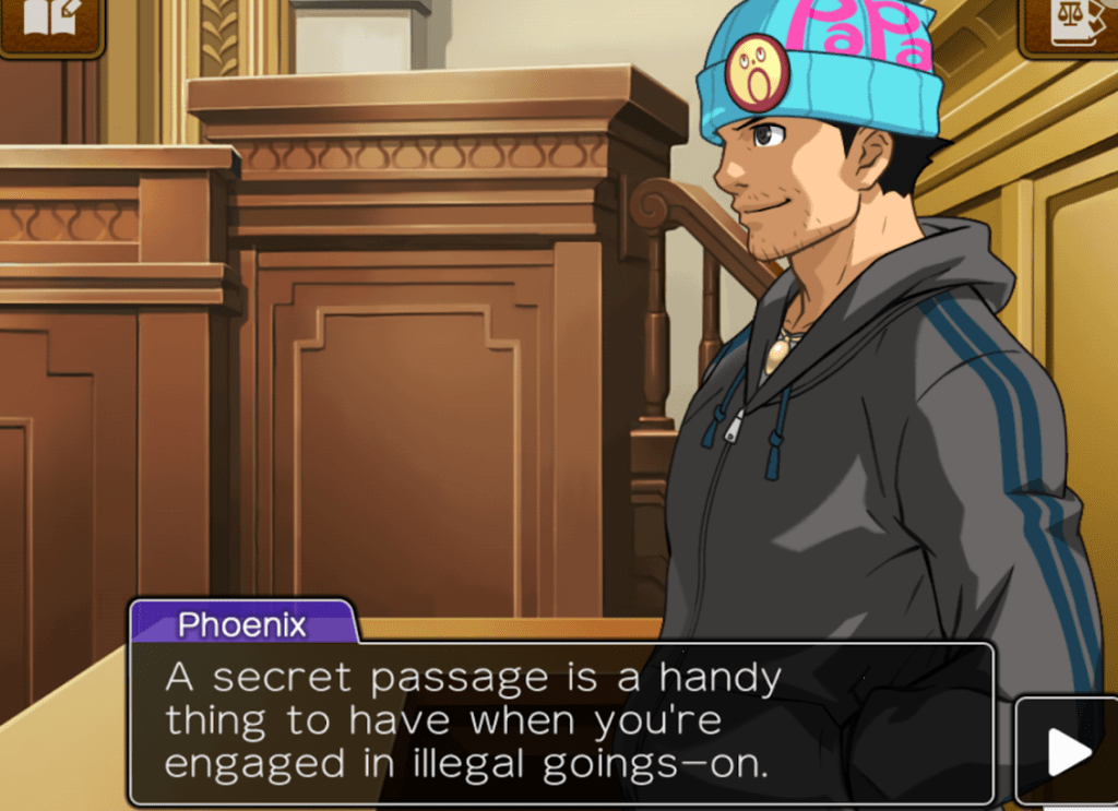 Il Phoenix di Apollo Justice non è più quello che conoscevamo. La sua personalità cambia drasticamente: da avvocato ottimista e coraggioso, diventa una figura più misteriosa e riservata. Sebbene mantenga una certa aura di competenza e intelligenza, il Phoenix di Apollo Justice è anche più cinico e spietato, incline a giocare più “sporco” per raggiungere i suoi obiettivi. Un esempio lampante di questo cambiamento è l’uso dell’asso nascosto nella bottiglia, un trucco astuto che sembra allontanarsi dalle sue strategie più “pulite” del passato.