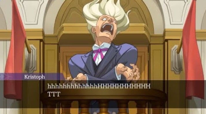 - Costruisci lo scontro finale: Klavier, tormentato tra giustizia e legame fraterno, si ribella al fratello. Insieme ad Apollo, smascherano Kristoph in aula. Non solo prove, ma tensione, parole taglienti, rivelazioni distruttive. Phoenix osserva e lascia che Apollo concluda. Questo avrebbe permesso anche a Kristoph di essere un villain migliore.