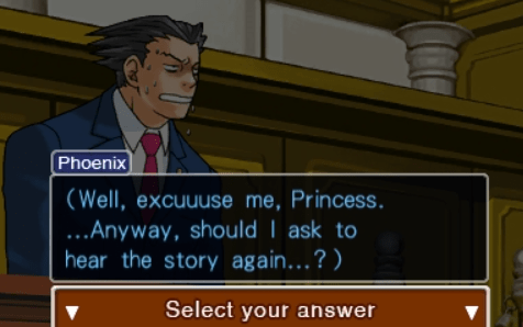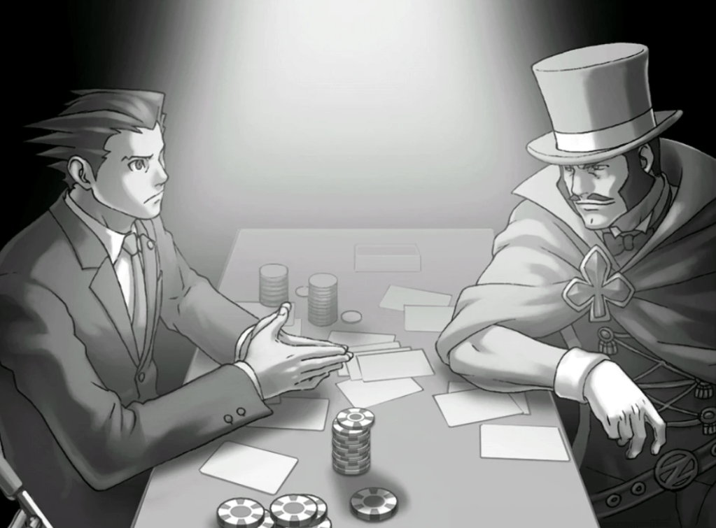 In Justice for All, Phoenix sa bene che Edgeworth è scomparso, ma non si confida con nessuno. In Apollo Justice, sa esattamente chi è Vera Misham e perché è importante, ma costruisce un teatrino di mezze verità (ed è il motivo per cui personalmente ritengo il Phoenix di Apollo e quello successivo abbastanza simili, seppur di difficile interpretazione). Questo tiene in piedi la tensione: lo spettatore/lettore sa che Phoenix sta bluffando, ma non sa quanto. E non lo sanno mai nemmeno i suoi avversari: né in tribunale, né quando giocano a poker.