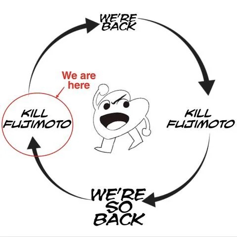 Nessuno può sapere con precisione cos’abbia portato Tatsuki Fujimoto a chiudere in fretta e furia Chainsaw Man, però la possibilità più realistica è che si sia semplicemente stancato della sua stessa opera e, soprattutto, dei ritmi di pubblicazione imposti da Shōnen Jump+. Nel corso degli ultimi anni la pubblicazione del manga è stata spesso bimensile e la qualità della scrittura e, soprattutto, dei disegni ha subito un calo. Questi segnali hanno portato la community a immaginarsi un Fujimoto privo della motivazione che lo aveva portato a raggiungere le vette qualitative della prima parte dell’opera o di oneshot come “Look back” e “Goodbye Eri”. E, in tutta onestà, posso capirlo. Penso che pure io mi stuferei di una mia storia se fossi costretto a portarla avanti con ritmi serratissimi e senza pause tali da consentirmi di godermi un po’ la vita.