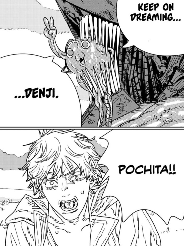 Per permettere a Denji di tornare a condurre una vita relativamente normale, nel penultimo capitolo Pochita ha deciso di mangiarsi da solo, causando la scomparsa di Chainsaw Man e delle pesanti modifiche alla realtà (che però non appaiono giustificate dalle informazioni fornite in precedenza al lettore sul funzionamento dei suoi poteri). Le ultime pagine del manga mostrano un Denji privo della sua doppia identità e libero di vivere senza responsabilità eccessive, circondato da alcune persone con le quali aveva stretto un legame (tra cui una rediviva Power).